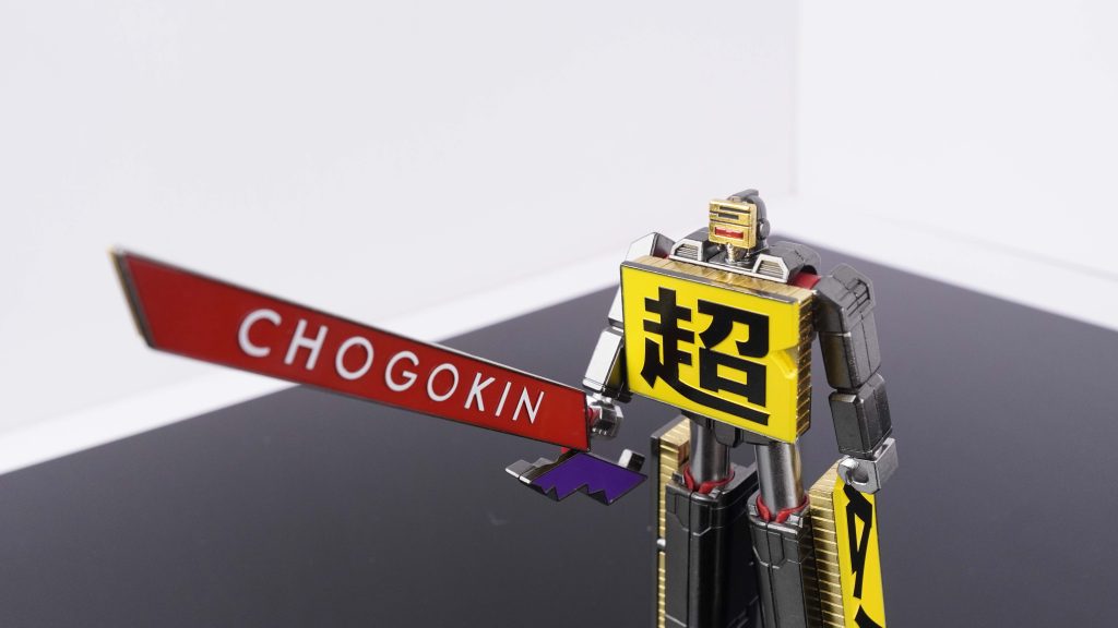 並內建 CHOGOKIN 持劍配件,無需額外加裝。 刻意營造的昭和懷舊氛圍,