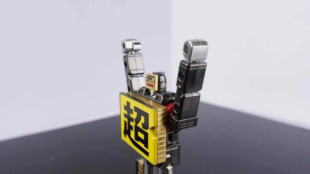 LOGO 標誌造型不僅可單獨展示,更能搭配其他超合金魂玩具一起合照增添場景感。 玩具整體結構平衡作很得很好,不會東倒西歪,即使直立擺放在桌上,也能輕鬆保持穩定。
