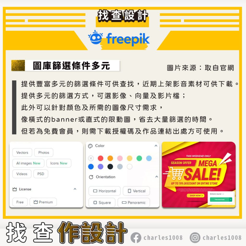 Freepik提供多元的篩選模組(如附件),