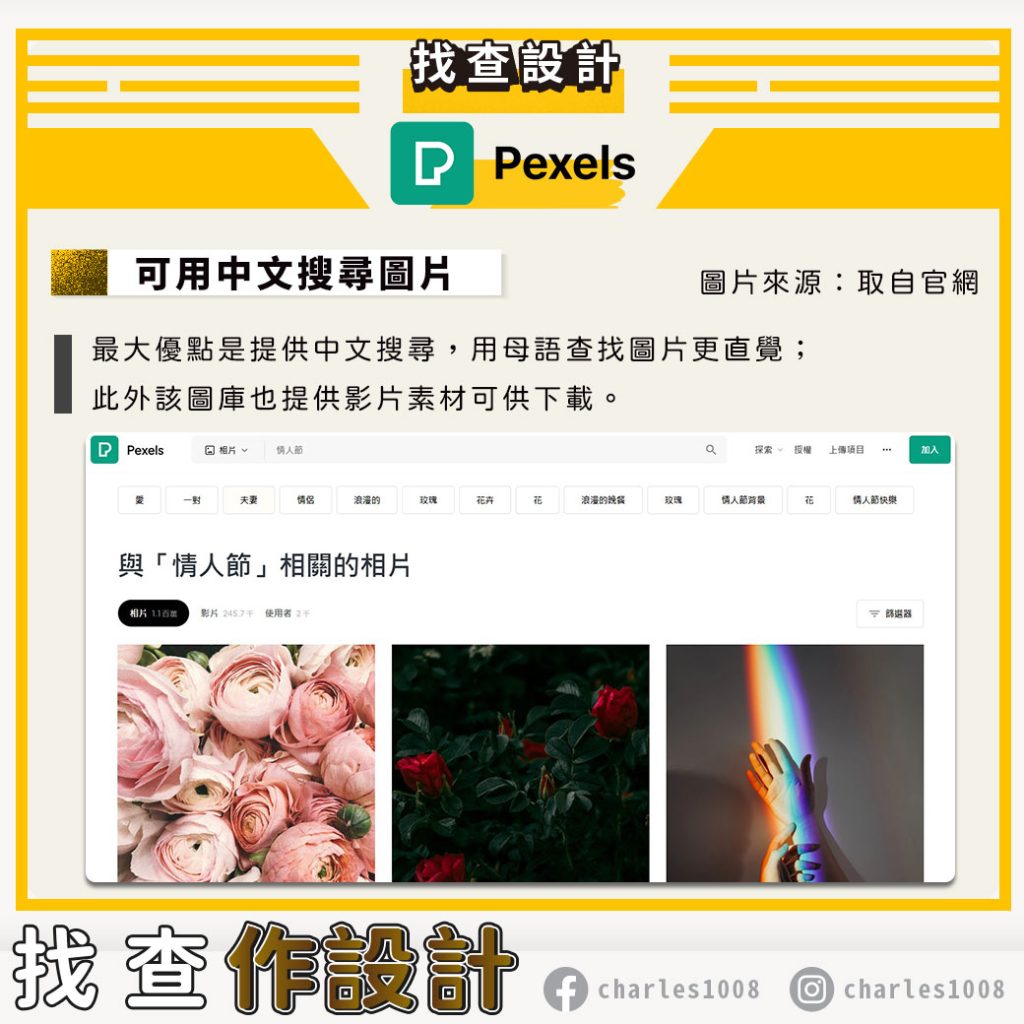 最大優點是提供中文搜尋,用母語查找圖片更直覺;