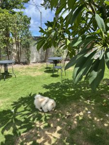 我們一抵達就讓狗狗在草皮上奔跑,民宿門口設有清潔區與垃圾桶,方便又整潔。